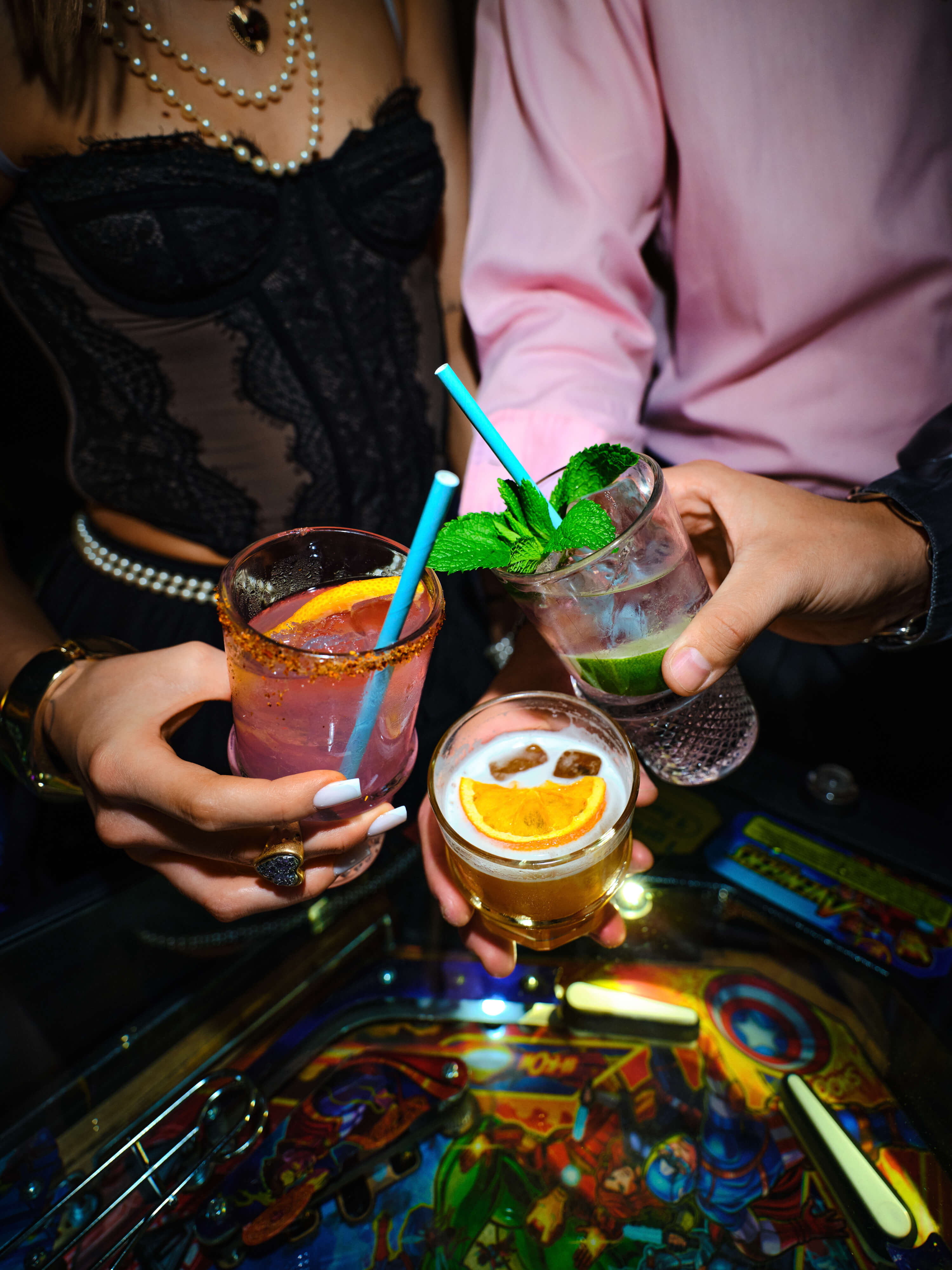 Signature cocktails, killer pinsa, and snacks - everything you need between game rounds.