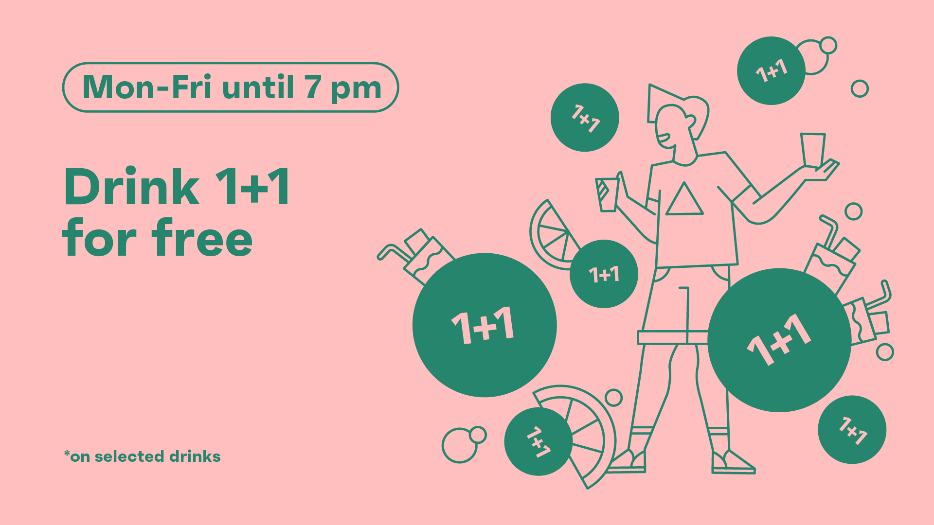 6Monday-Friday until 7:00 PM - 1+1 drink free 🍸