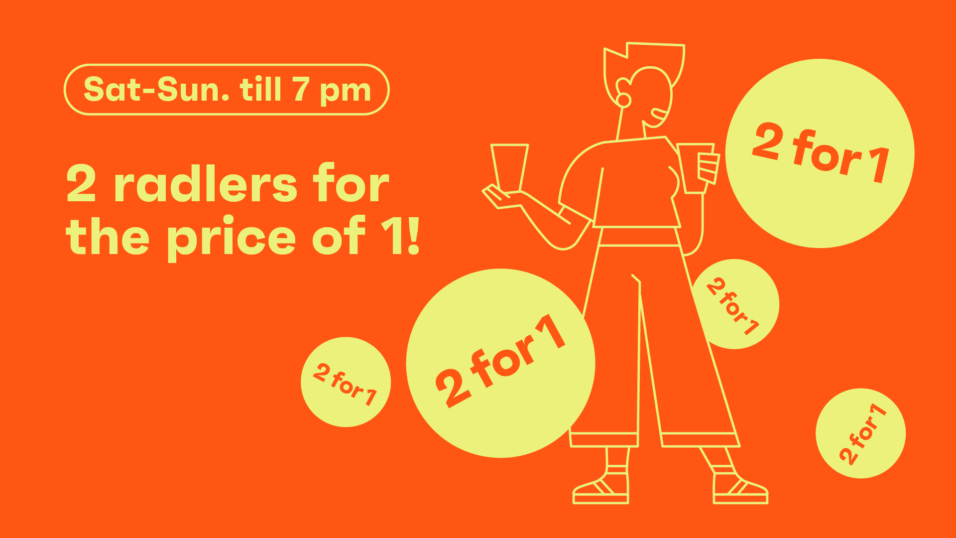 Don't hesitate - grab two at once this weekend! 2-for-1 radlers until 7:00 PM.