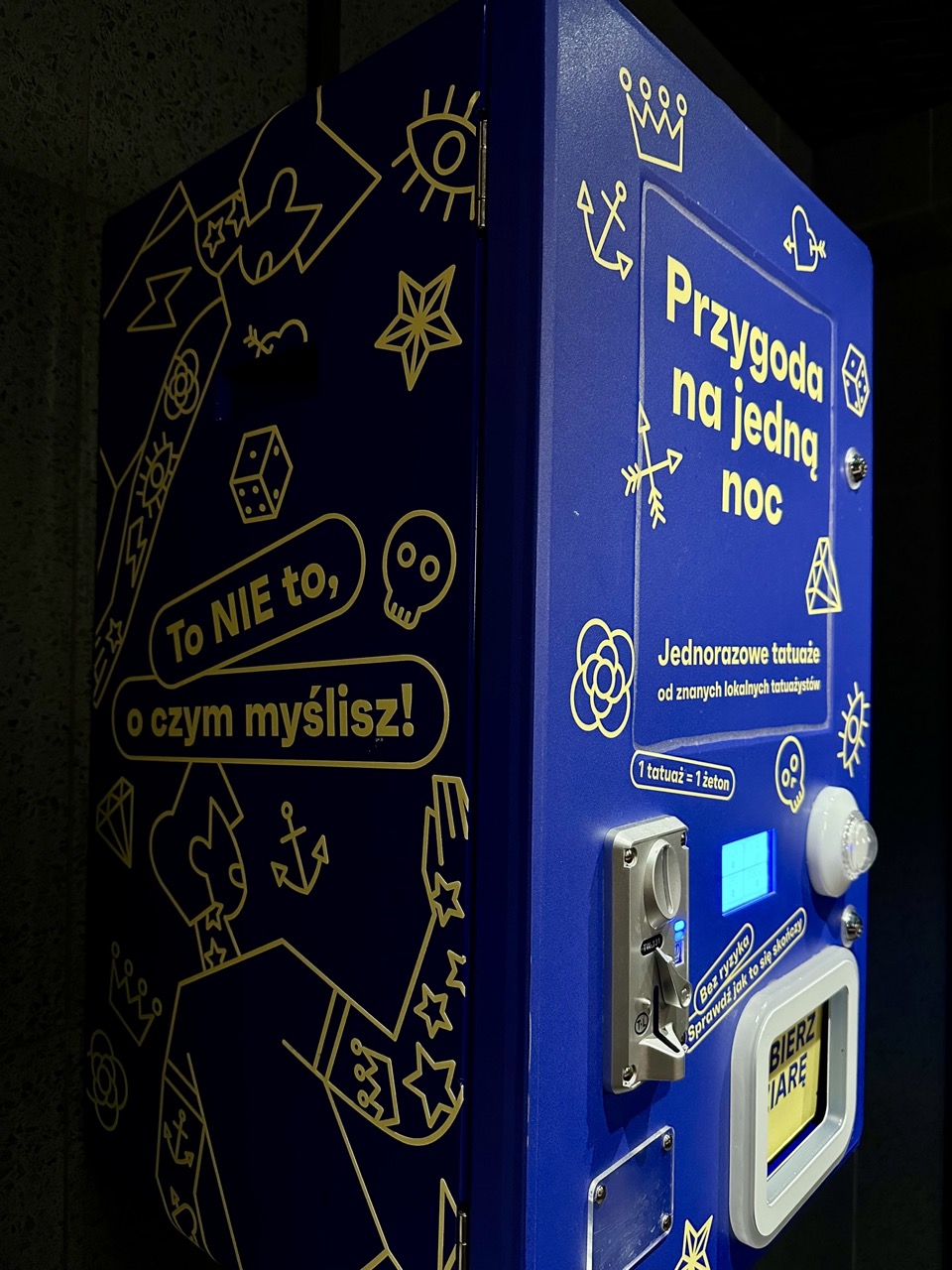 Trochę dyskretnie, trochę przewrotnie, trochę jakbyś wiedział, że robisz coś, co będzie dobrą historią. Klimat? Powiedzmy, że inspirowaliśmy się pewnym typem automatów, które też kojarzą się z „jednorazowymi przygodami”. 😉 Tyle że u nas… odbierasz dziarę.
