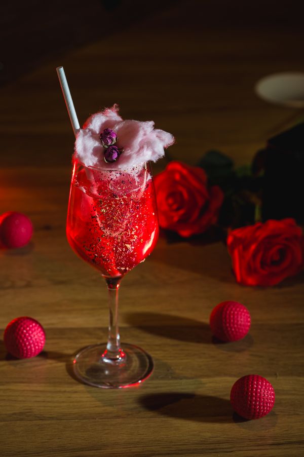 Bombay Sapphire, Martini Ambrato, Martini Rubino, Cynar, wiśnia, róża