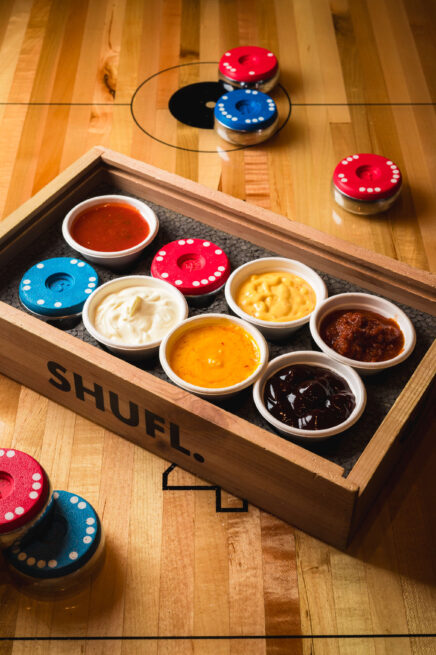 nachos, kukurydza, Grana Padano, papryka gochugaru, szczypior, Crème fraîche, sos serowy